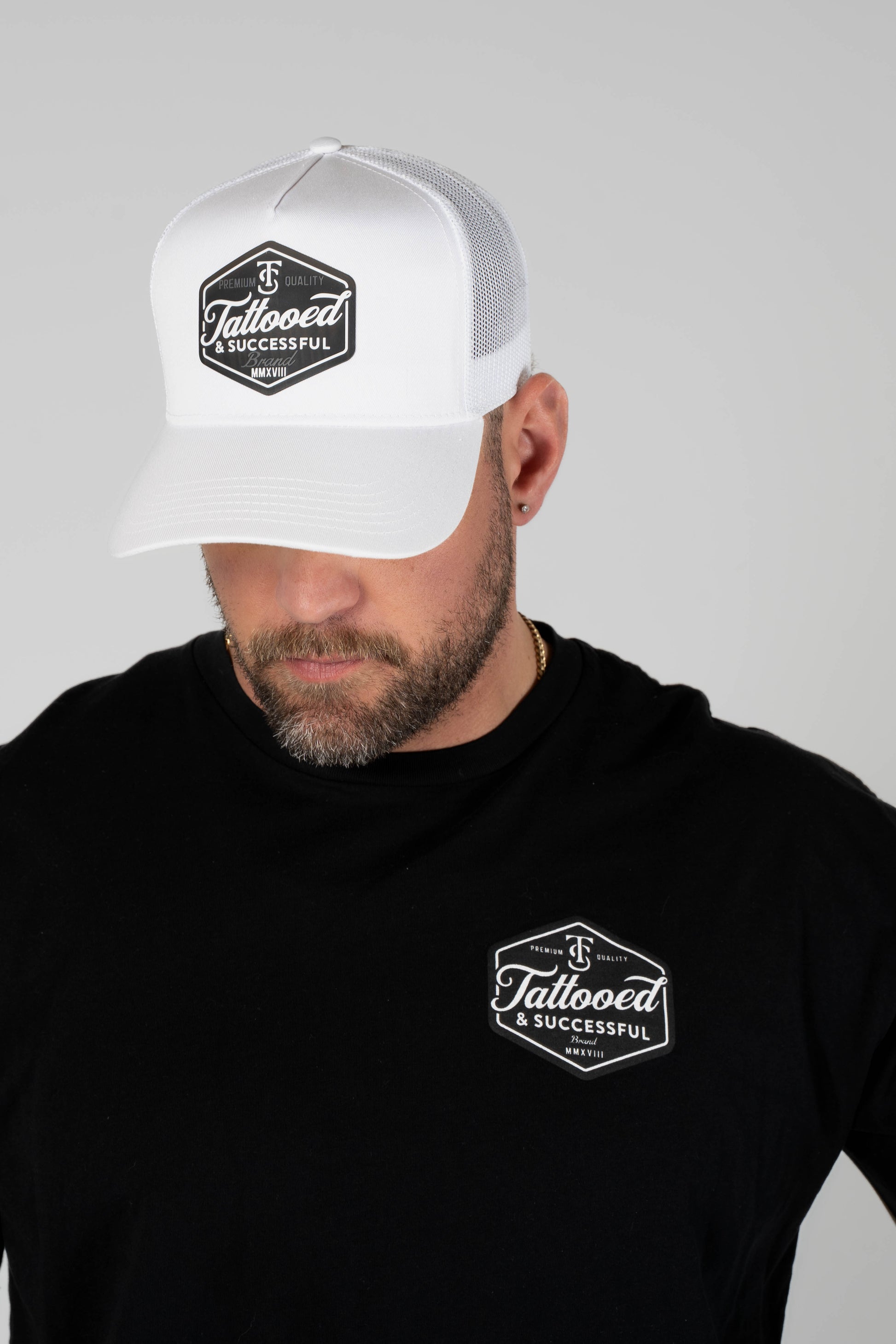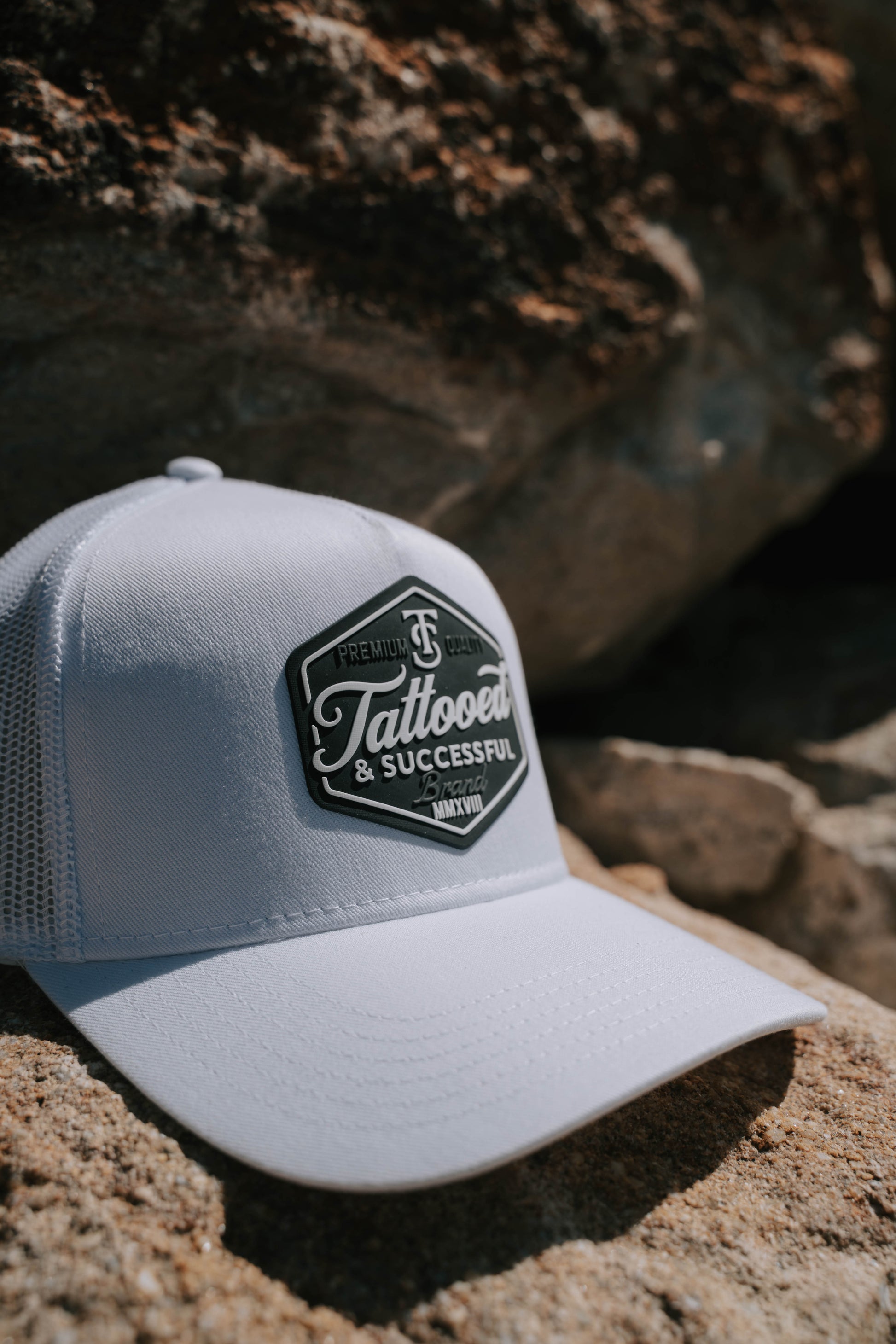 Brand 5 Panel Trucker Hat - White