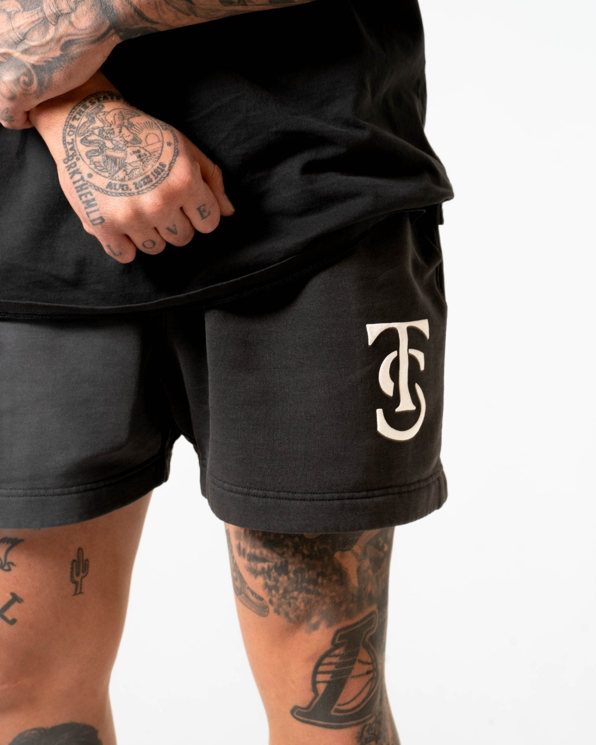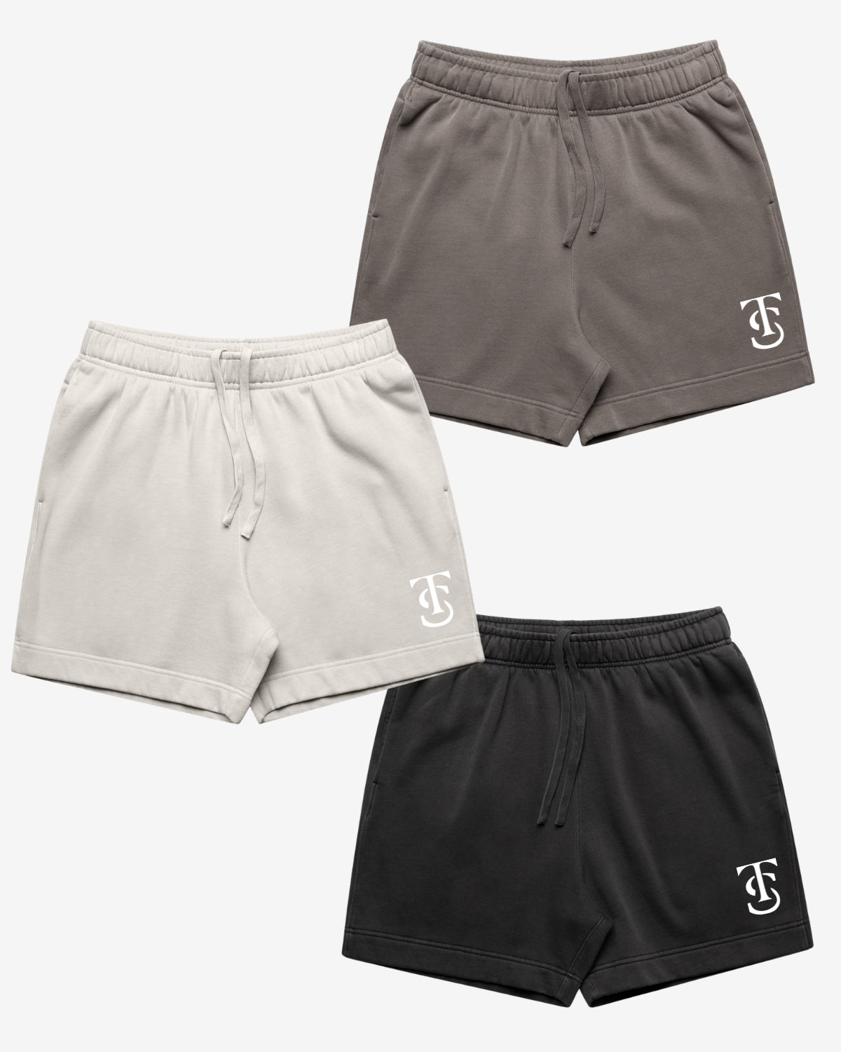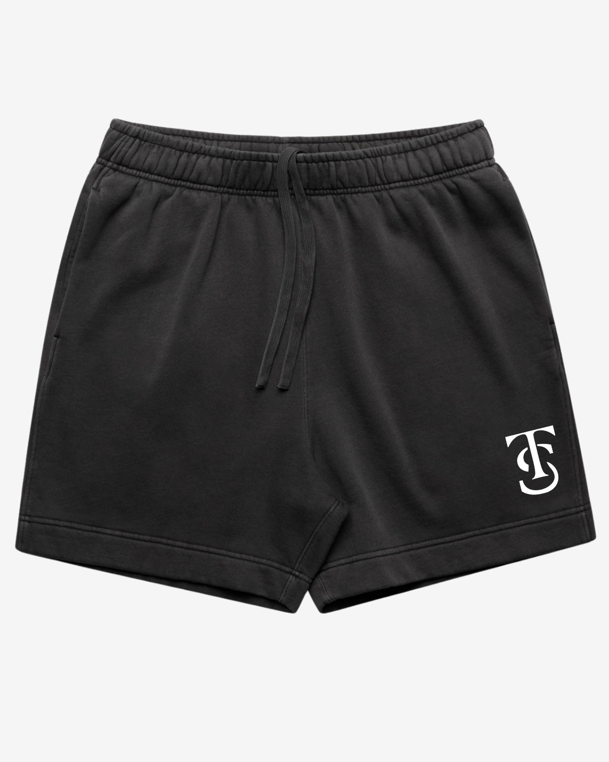 • Elastic waistband with tonal drawcord, garment-dyed, 2 side pockets, 1 back pocket, double-needle hems.
