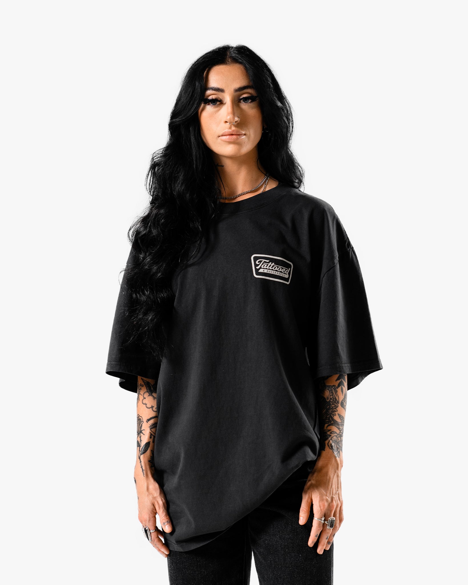 DESIGNED FOR AN OVERSIZE FIT. FOR A TIGHTER FIT WE SUGGEST SIZING DOWN. IF BETWEEN SIZES, SIZE UP FOR OVERSIZE, AND DOWN FOR TIGHTER FITS.