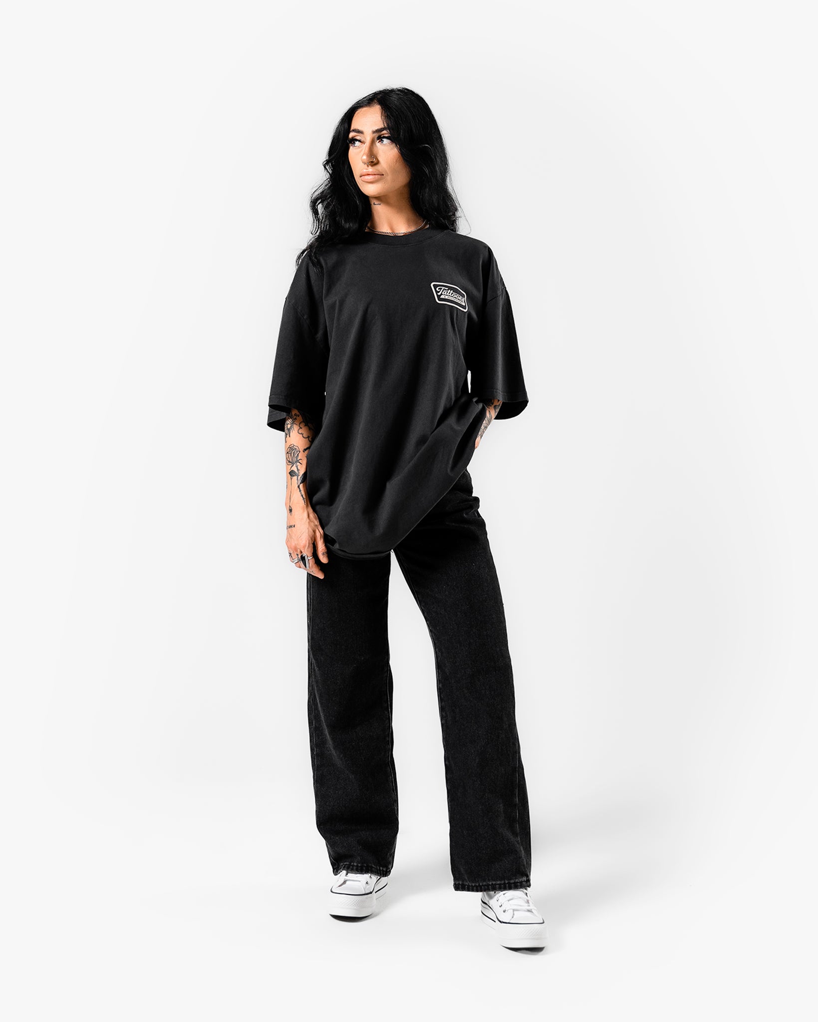 Let's just say, get ready to make this your new favorite shirt! By high demand, the Vintage logo is here on a brand new oversized mid-heavy weight tee. Printed on front and back, the tee boasts the iconic Vintage logo in a minimal and clean aesthetic. Designed to be your perfect outfit centerpiece, rock the tee anywhere from the gym to the social outing.