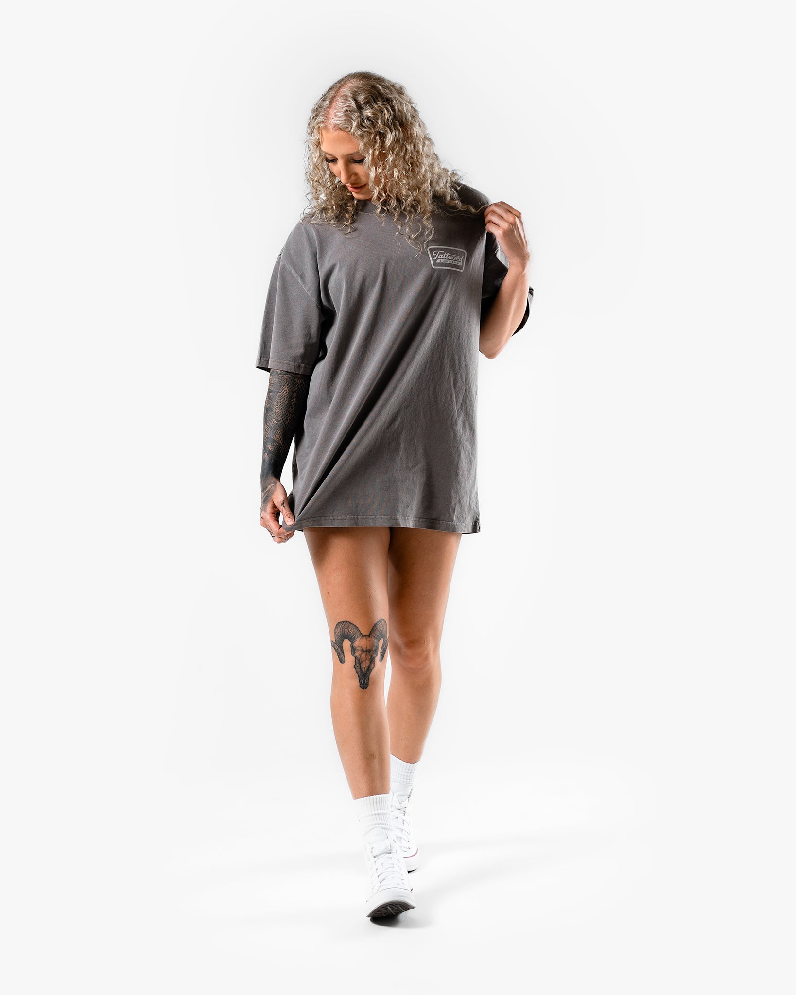 Let's just say, get ready to make this your new favorite shirt! By high demand, the Vintage logo is here on a brand new oversized mid-heavy weight tee. Printed on front and back, the tee boasts the iconic Vintage logo in a minimal and clean aesthetic. Designed to be your perfect outfit centerpiece, rock the tee anywhere from the gym to the social outing.