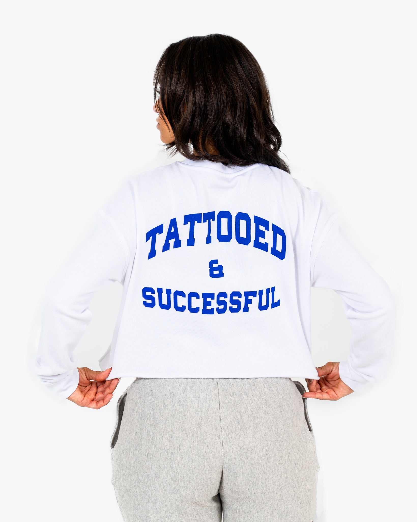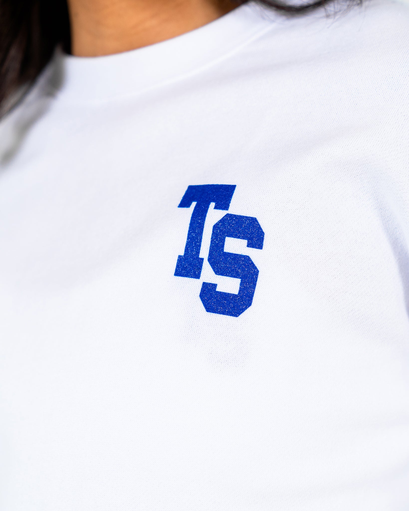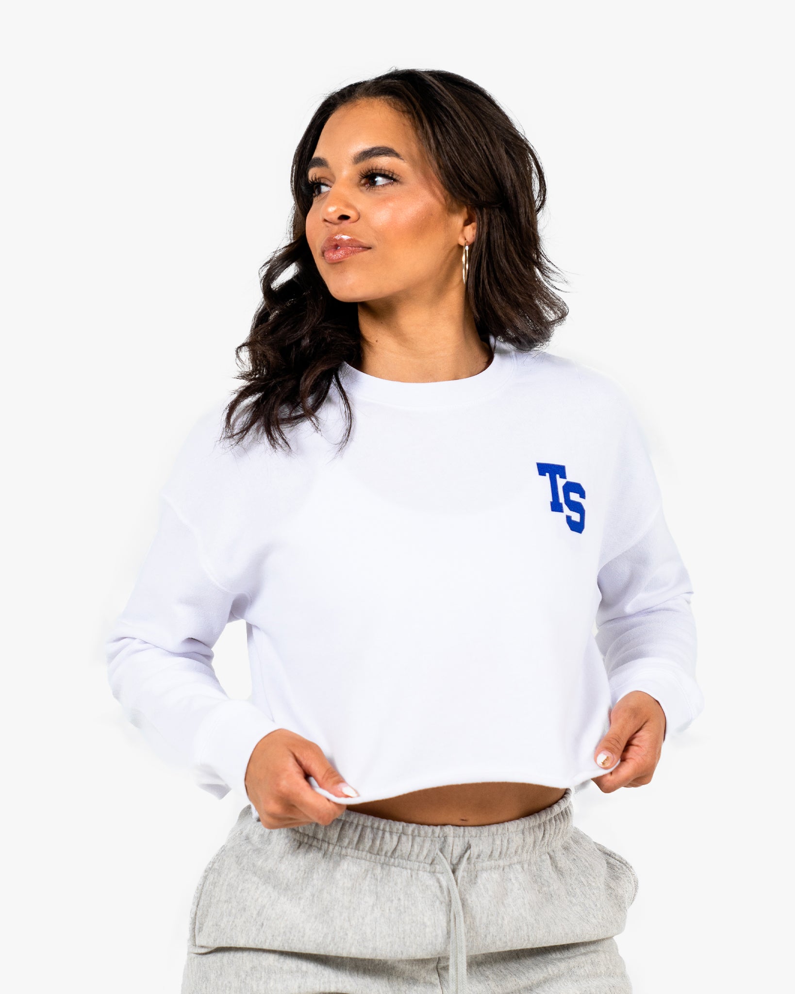 WKND Crop Crewneck - White w/ Royal