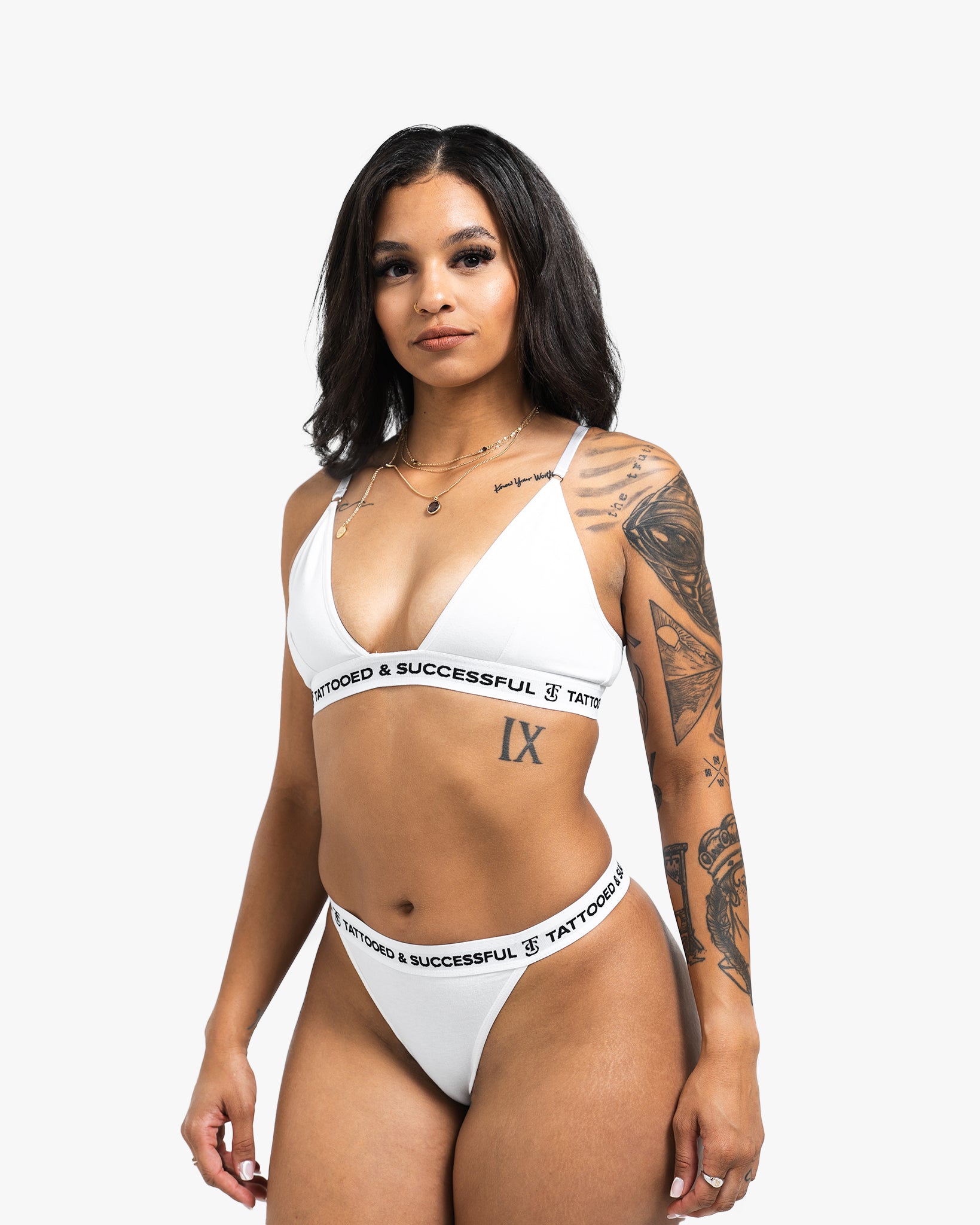 The all new intimates collection, our take on bringing you the softest and most comfortable leisure wear to offer. The collection includes the matching bralette and thong, both with a simple yet elegant approach to your daily wear. Wear it with your favorite T&S gear, or on its own, you'll be comfortable and confident all day long.